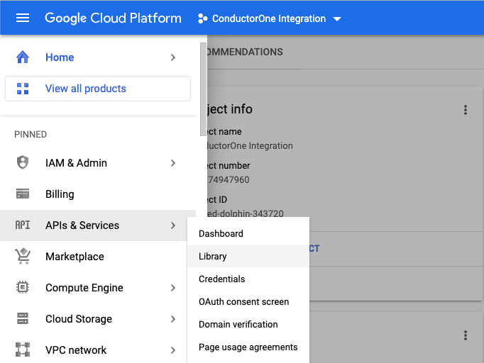 In the navigation menu, navigate to > APIs & Services > Library.