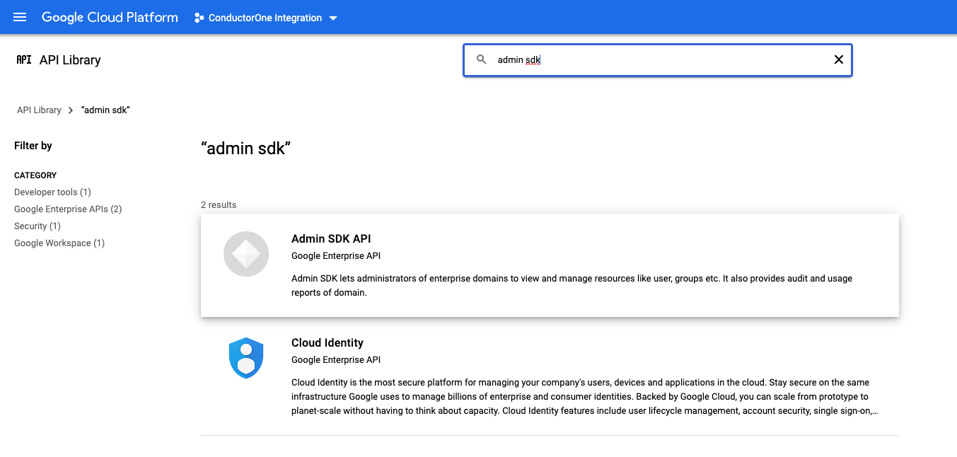 Search for and select the Admin SDK API.