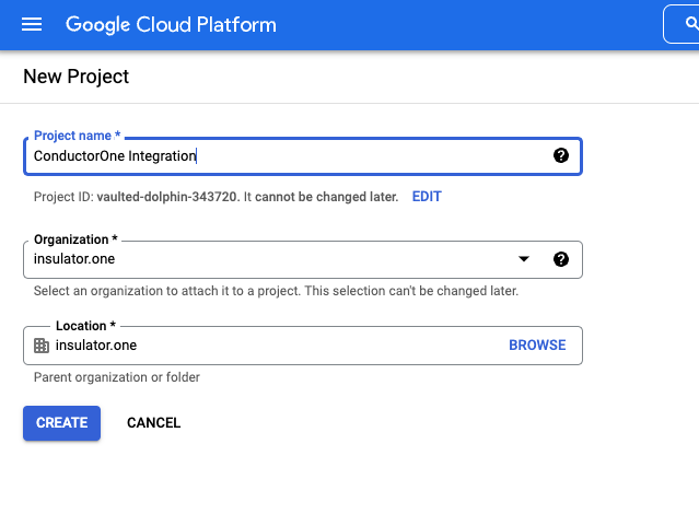 - Project Name: Choose a names, such as “ConductorOne Integration”